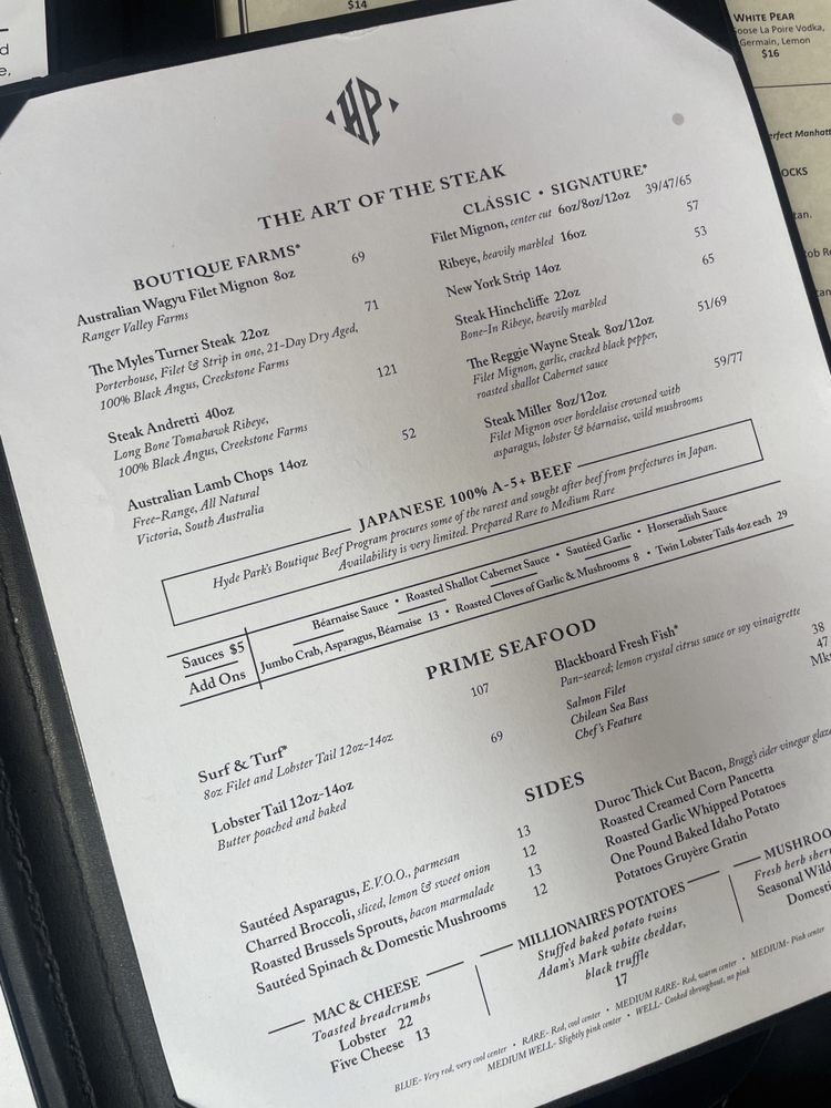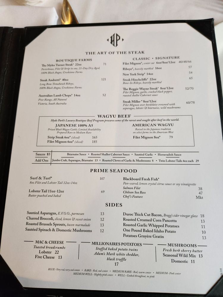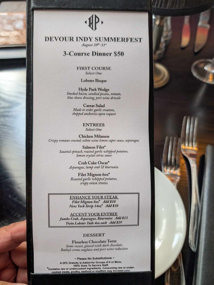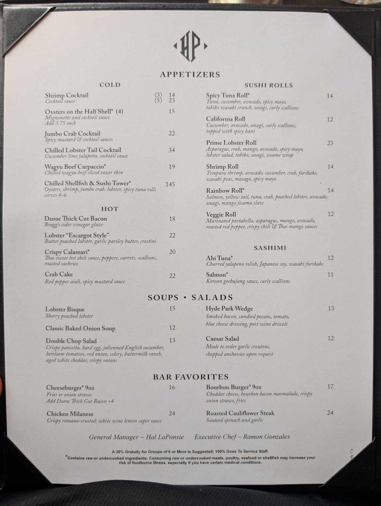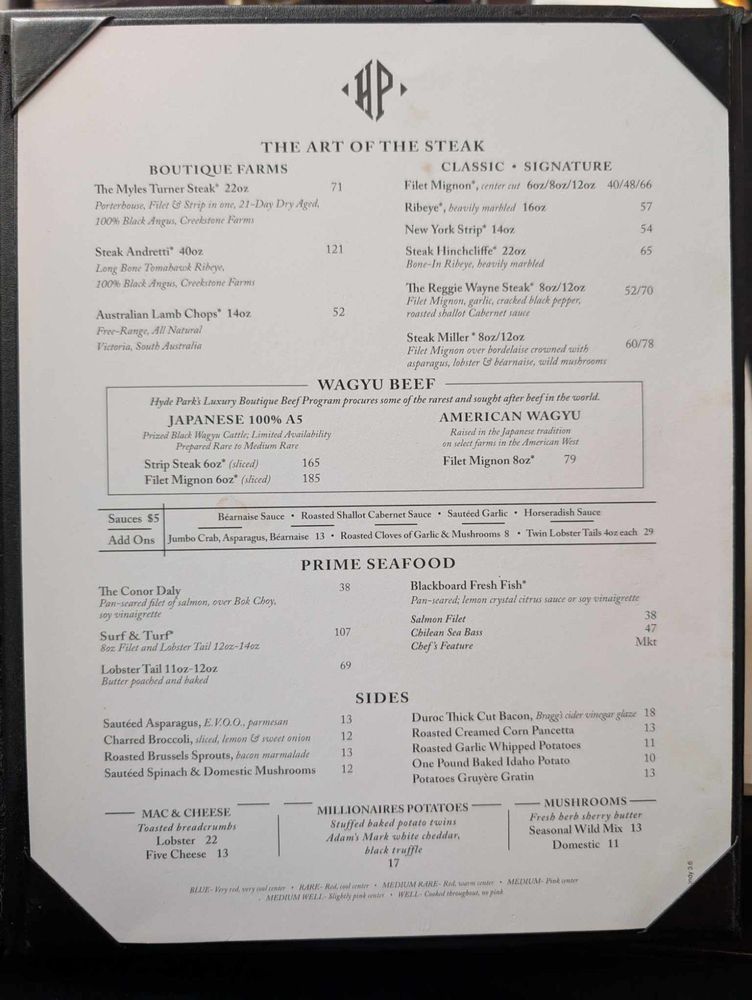 Hyde Park Prime Steakhouse Indianapolis Menu (Update 2025)